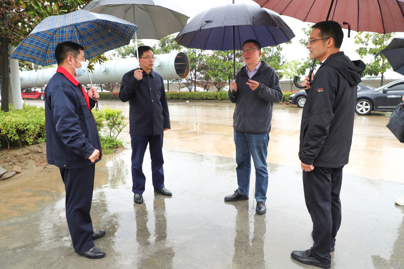 【概要描述】4月7日,潜江市委常委、市委组织部部长唐雷冒着大雨来金澳集团项目建设现场实地调研考察,了解油品升级深加工系列项目建设情况。