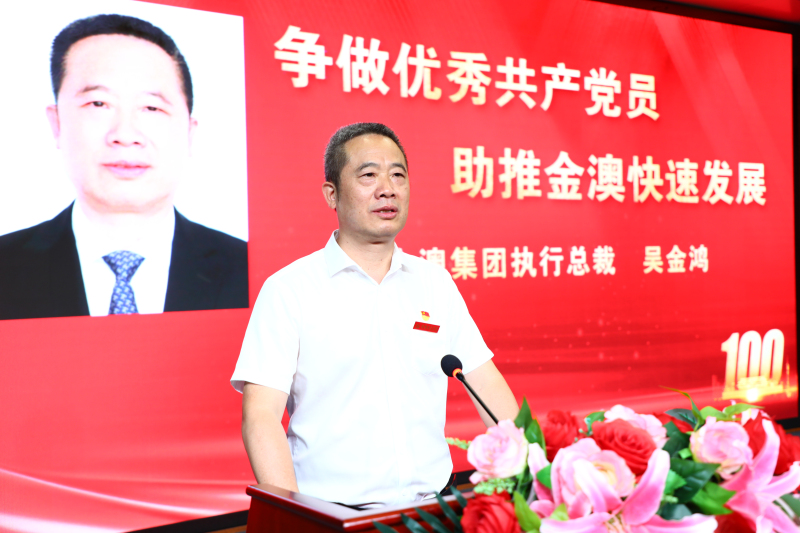金澳集团执行总裁吴金鸿同志发表了主题为《争做优秀共产党员 助推金澳快速发展》的讲话。他表示,舒心董事长10多年前就提出了“党建也是生产力”的论述,做好党的工作是公司不可或缺的重要工作。金澳的党员干部要具有讲奉献、懂感恩、善学习、求上进的独特气质和风格,要有明显区别于普通员工的工作作风。
