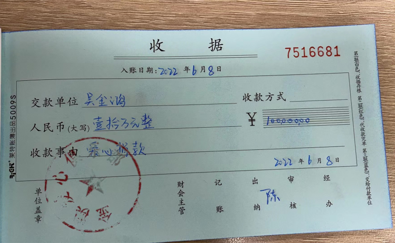 他第一时间将10万元奖金全额捐赠给金澳爱心俱乐部,这笔温暖人心的爱心捐款,代表了他作为全国优秀共产党员,坚守初心、传递爱心的大爱精神。
