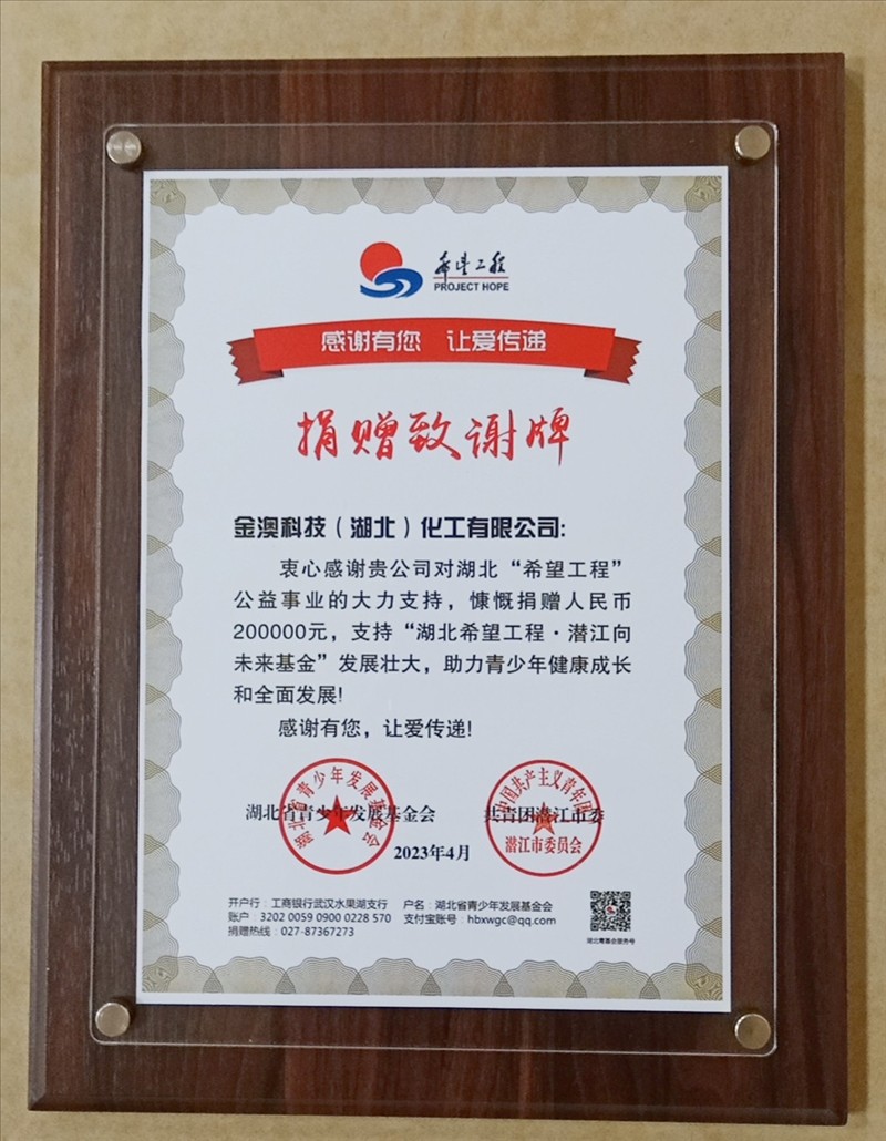 4月27日,潜江市集中入团仪式示范活动暨“希望工程助学计划”捐赠仪式在潜江中学举行。潜江市副市长王冰、市教育局局长李泰祥、共青团潜江市委书记邹放等领导出席活动,金澳科技党委副书记、工会主席黄容参加捐赠仪式。