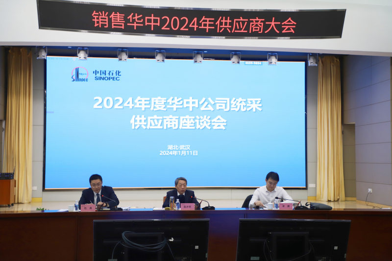 中国石化销售华中分公司总经理、党委副书记陈井军致欢迎词,他对参加会议的供应商代表们表达了诚挚问候和热烈欢迎,对各供应商在诚信合作、协同发展上长期以来给予的大力支持表示衷心感谢。