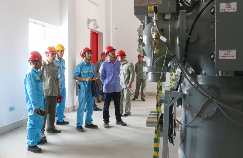 在公司副高级工程师、电能处处长王铁军的陪同下,各供电公司及相关单位负责人重点检查了110kV竹能线、变电站主要设备、电气控制室、GIS室、35kV配电室。