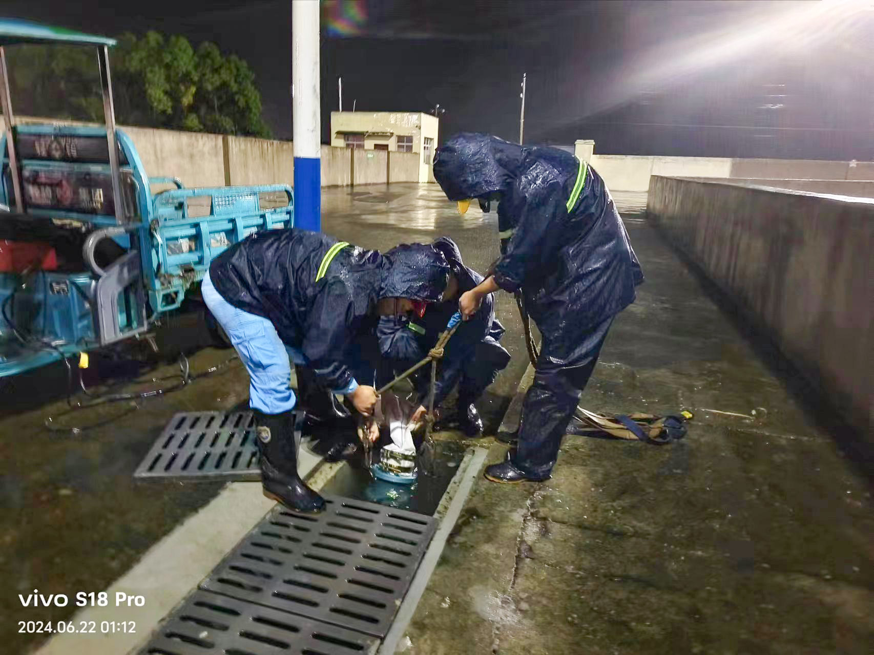 近期持续强降雨,物流公司监利油库安环保卫科科长王海军,油库副主任刘超,消防员詹康组织值班值守人员连夜对库区雨水进行应急排涝。