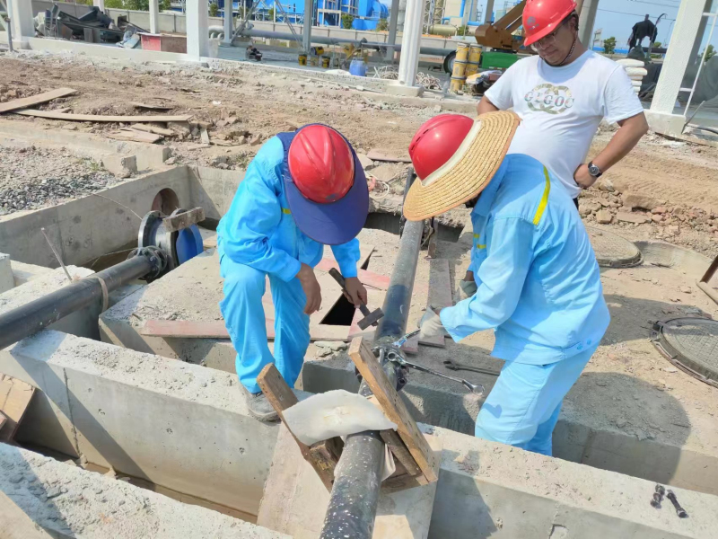 公司党委委员、输油管道公司副总经理肖书祥与阀门厂家,对监利-潜江输油管道项目监利输油站阀门进行检查。