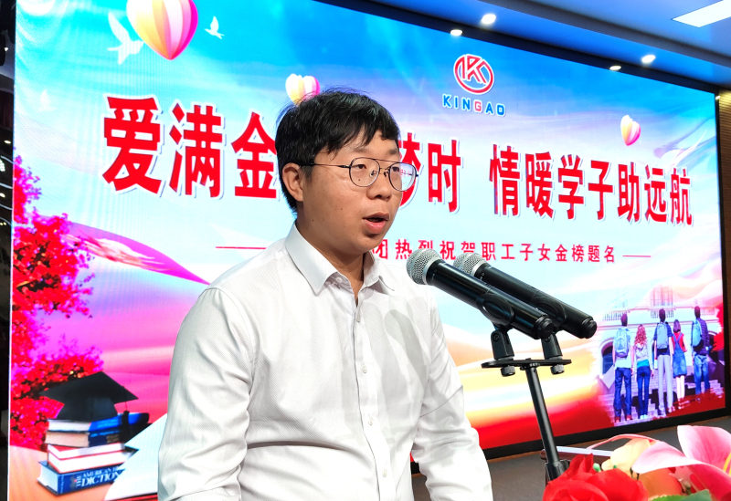 金澳集团执行总裁吴让生对学子们“金榜题名”表示祝贺,并以“筑梦奋进 共赴新程”为主题发表了鼓舞人心的讲话。他表示,公司每年举办“金秋祝学”活动,不仅是为了将金澳科技真挚的关怀传递给每一位员工及其家庭,更是为了拉近企业与员工之间的心灵距离,共同编织一个更加紧密、温馨的大家庭。通过这一活动,员工家属能够深刻感受到金澳科技独特的企业文化,共同推动金澳科技高质量发展。